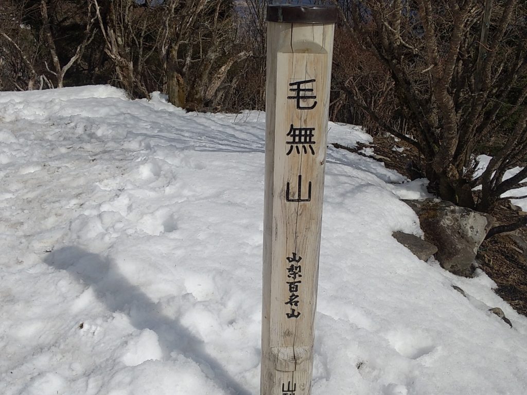 毛無山は日本200名山でテーブルマウンテンだ。最高点は標高1964mだが、ここから10分ほど進んだ先が毛無山山頂(標高1946m)である。三角点もこちらにある。