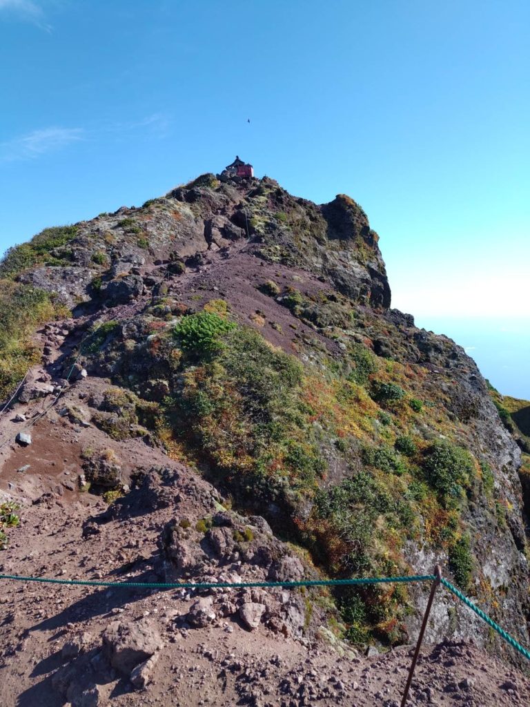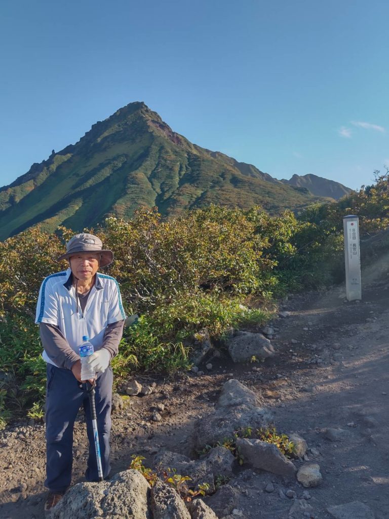 第二見晴台8合目眼前に利尻岳山頂が、長官山を登り避難小屋まで下る、下山はアルバイトを強いられる登りだ、9合目を過ぎるとじきに沓形分岐、急登を登り切ると山頂、眺望は360度申し分ない、礼文島は眼下に、14.10着、18.00に登山口までホテルの車が迎えに来るから、飛ばすが死にそうなぐらい、くそえれえ、息子に二度とこんな山行は止めだ、8合目からザックを持つてくれた、身も心もかるくなりルンルン気分、息子は軽々と背負い一気に飛ばし、18.00ジャスト、登山口着、ホテルの車が迎えに来ていた。