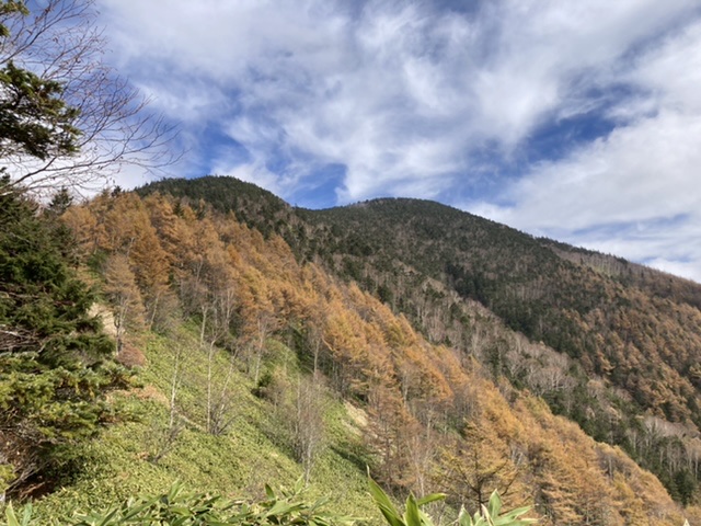 2022年10月30日 メンバー:神田 中央アルプスの北部に位置する経ヶ岳。初めて訪れました。今回利用した権兵衛峠からの道は昔あったルートを整備し直したとのことで、しっかり手入れされていました。人気もかなりありそうです。 権兵衛峠の登山口 カラマツの紅葉 モノレール沿いに登る モノレール終点の電波塔 電波塔から経ヶ岳 御嶽が間近に見える。 笹が綺麗に刈払いされていて歩きやすい。 伊那谷方面。南アルプスは雲に隠れつつある。 頂上まで結構距離がある。 頂上着。ここは風が抜けて寒いのでそのまま少し先に言ってみる事にした。 週初めに降った雪が残っている。 大泉山ピークと思われるが何も無いのでここで引き返す。 東側から見た頂上方面。 再び経ヶ岳頂上。木が伐採され展望が良くなっている。このまま同じ道を下山する。 高い山は上部が雲に隠れてしまった。これは御嶽展望地。 頂上を振り返る。 コイノコから駒ヶ岳方面。 駒ヶ岳を正面に見ながら下山。 白い繊維屑のような種子はヤナギランのもの。 アヤメ山と伊那谷。本当にアヤメが生えている。夏に来ても結構色々な花が楽しめそうだ。 駐車場から電波塔間の紅葉が綺麗だった。 駐車場は結構広い。 カテゴリー: 日帰り 0件のコメント コメントを残す コメントをキャンセルメールアドレスが公開されることはありません。 ※ が付いている欄は必須項目です 名前 * メール * サイト ご意見、ご感想をお願いします。 次回のコメントで使用するためブラウザーに自分の名前、メールアドレス、サイトを保存する。 Δ