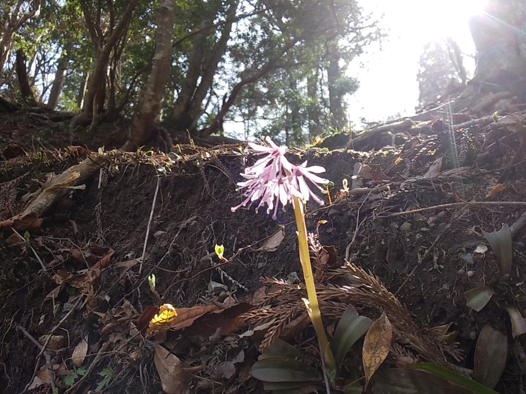 逆光で撮影してみた。自分ではお気に入りの1枚です。このあと、イワウチワの群生地がありました。