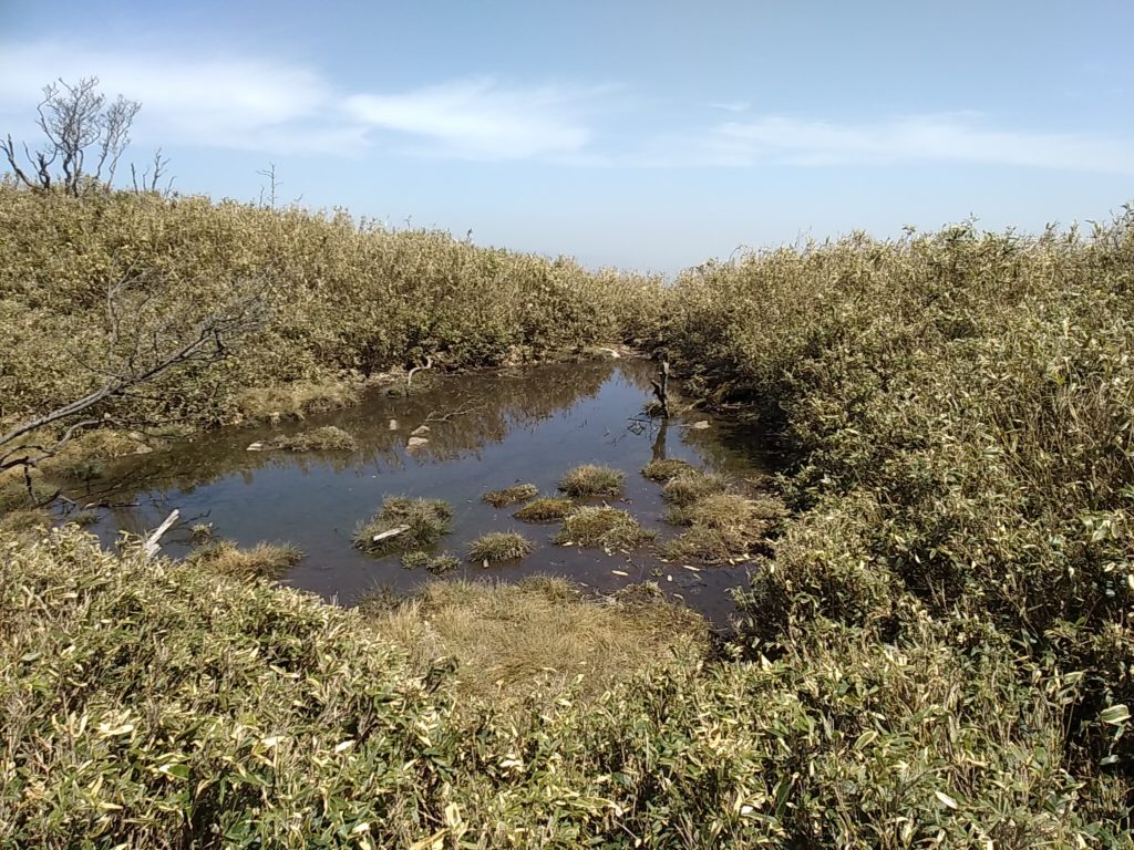 雨乞岳山頂の池。11時30分に着いて、昼ごはんタイム。12時に下山開始。
