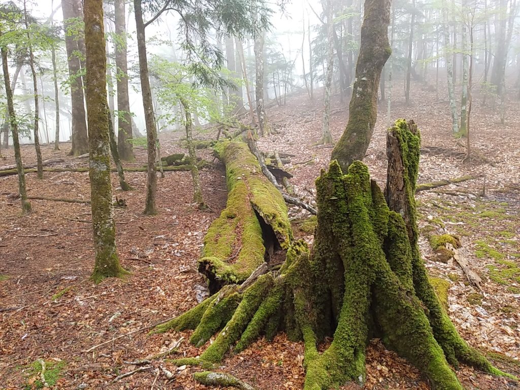8年前は近くまで行けたがロープが貼って登山道も付け替えられていました。大ミズナラの根元。