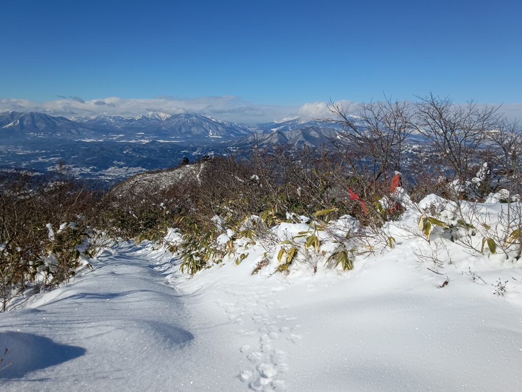 やせた尾根に出ると志賀高原方面の視界が開ける。