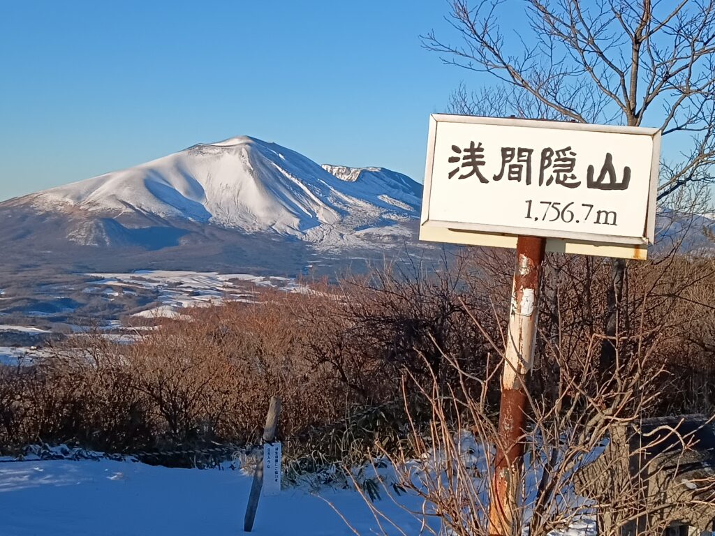 目の前にそびえる浅間山のほか、遥かに筑波山、東には甲武信岳の奥に富士山、八ヶ岳、志賀高原、谷川連峰など、関東から中部山岳地帯の山並みを堪能する。