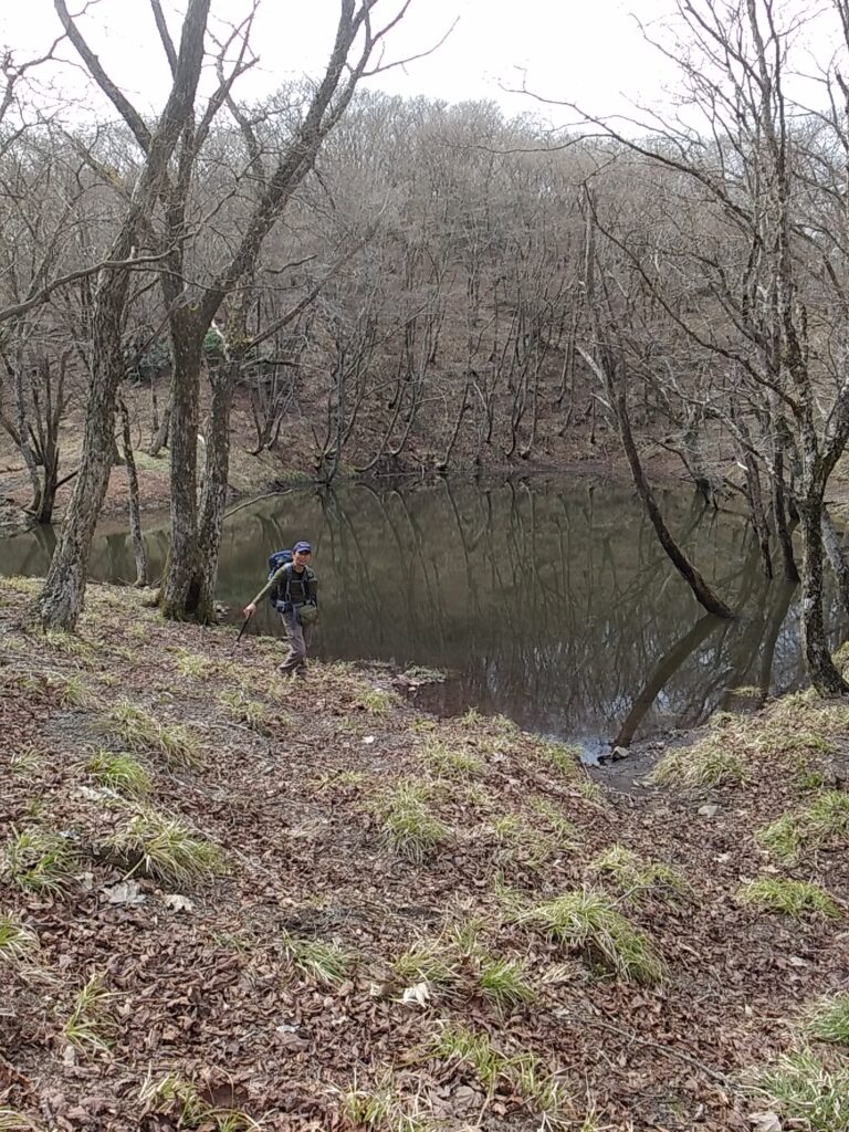 残雪が解けて大きな池もありました。夏場は涸れてしまうのでしょうね。