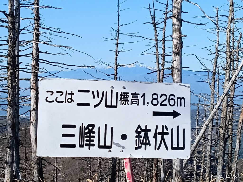 二ツ山は稜線から200mほど離れているが、分岐点よりも明らかに低く、見通しもイマイチなのですぐ引き返す。
