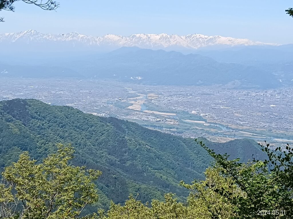 青木村上田方面の展望はあるものの、北アルプス方面は樹々に覆われて樹々の間からちらりと見える程度。