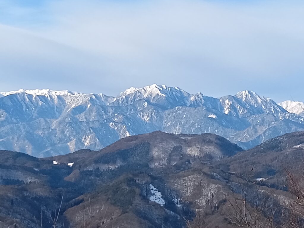 大姥山の頂上からは北アルプスの一大展望が広がる。