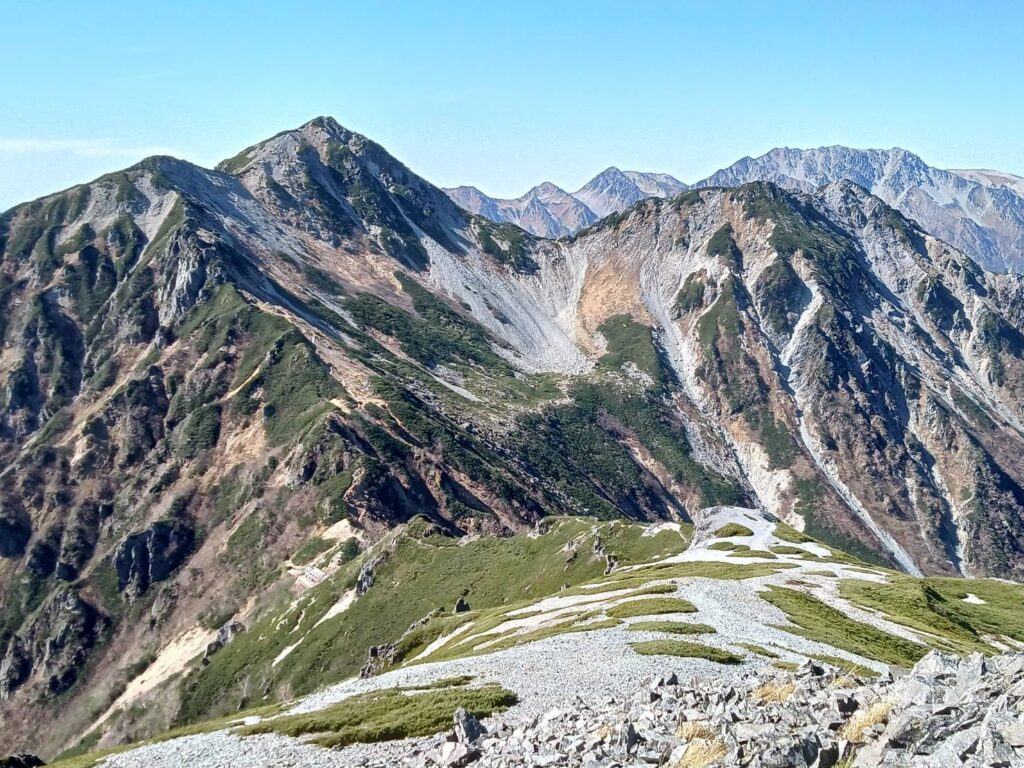 針ノ木岳を望みながら蓮華だけを下る。