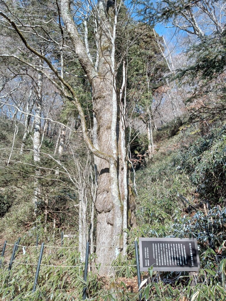 喘ぎながら15分ほど階段を上ると桂木の大木に突き当たる。