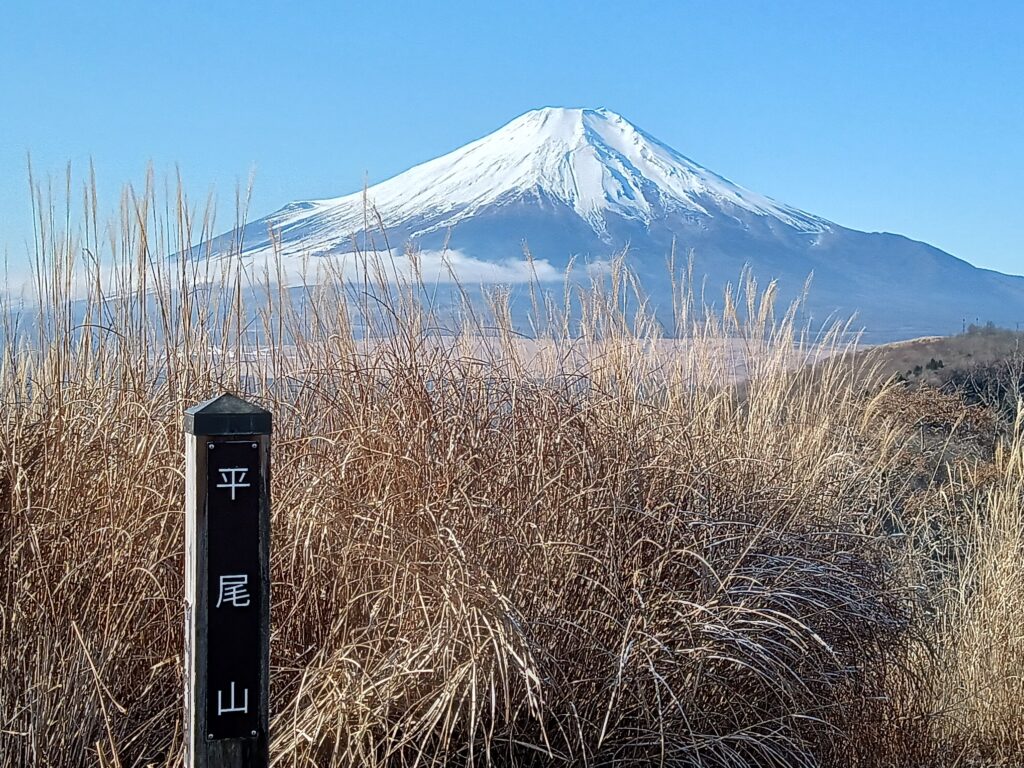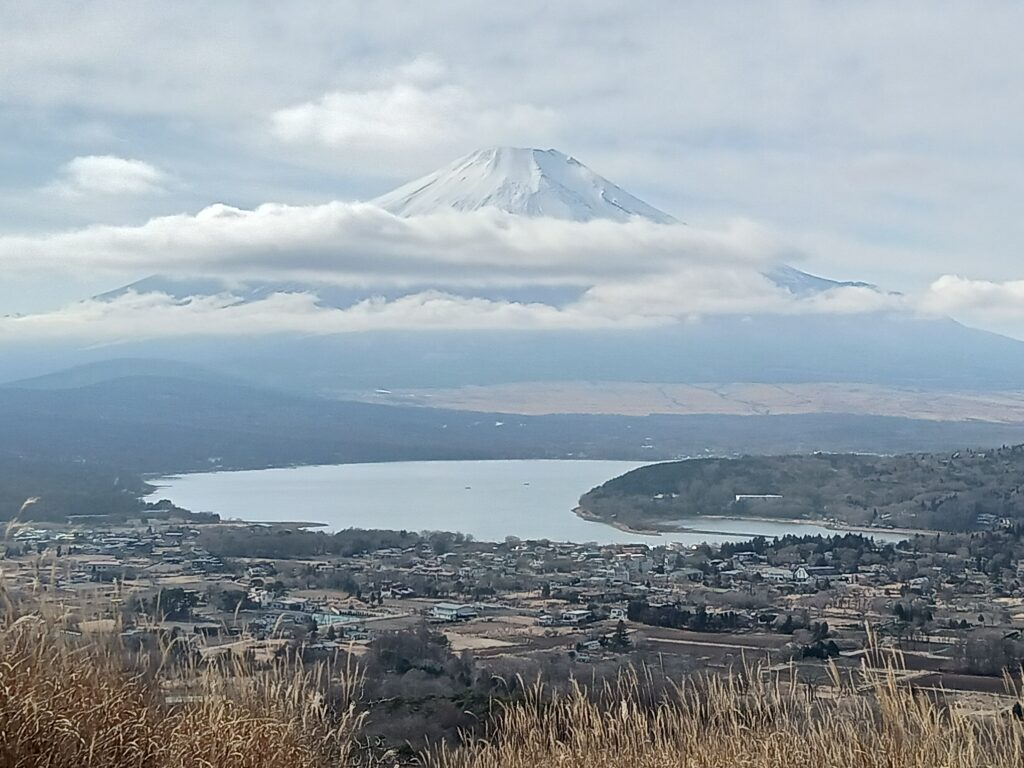 頂上直下からは山中湖越しの富士山が望めるが、あいにく午後になって少し雲が出てくる。