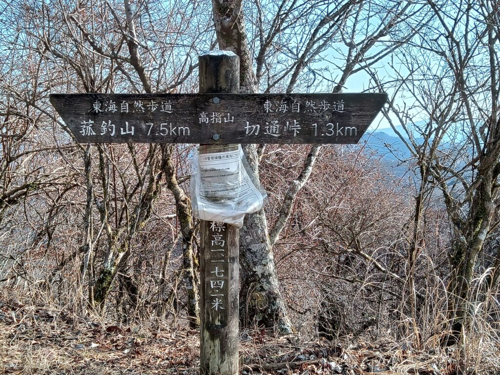 山頂はまだ先と思いピークを越えると十二曲峠の分岐であった。