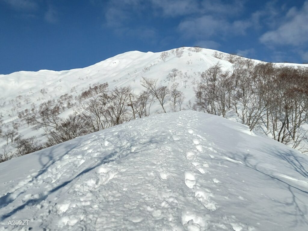 登山口の表記はないものの、噂通り明確なトレースが伸びており、適度に踏み固められた状態で歩きやすい。